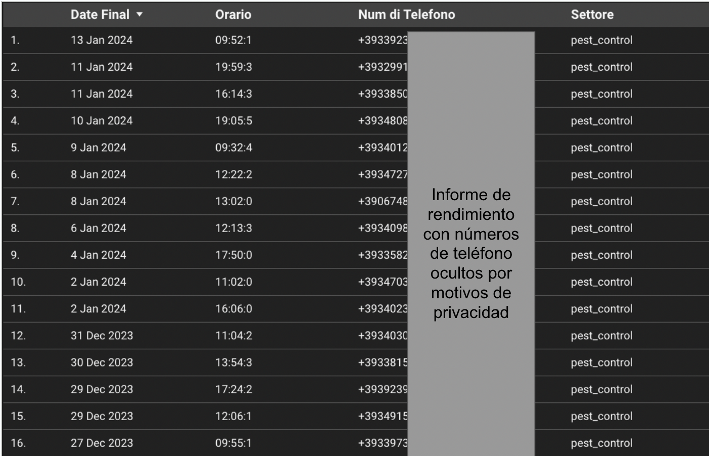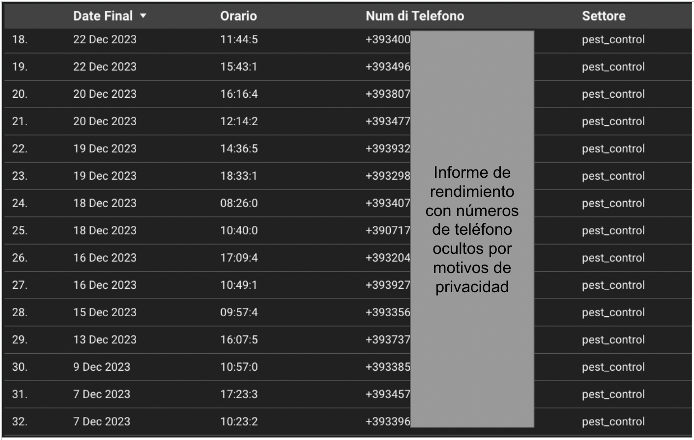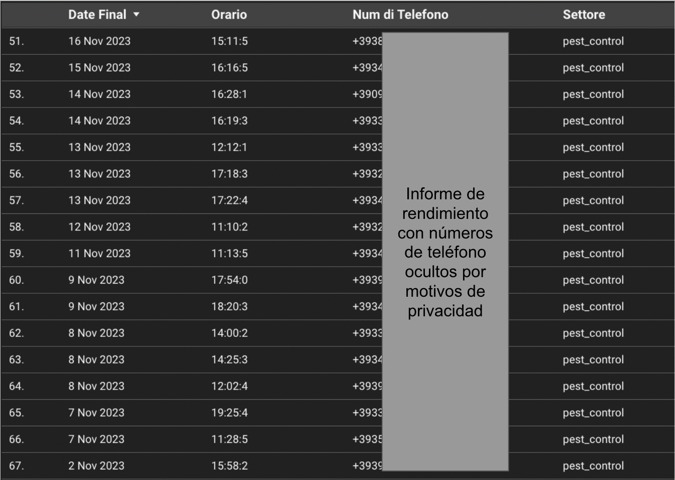 Más de 200 llamadas mensuales generadas de trabajos de electrodomésticos, cerrando muchos de ellos para grandes electrodomésticos como frigoríficos, lavadoras y hornos. A continuación adjuntamos algunas imágenes de los informes de Noviembre 2023 de M&E. Con Servicios Locales Markerting siempre tendrás acceso a informes de llamadas actualizados cada 5 minutos.